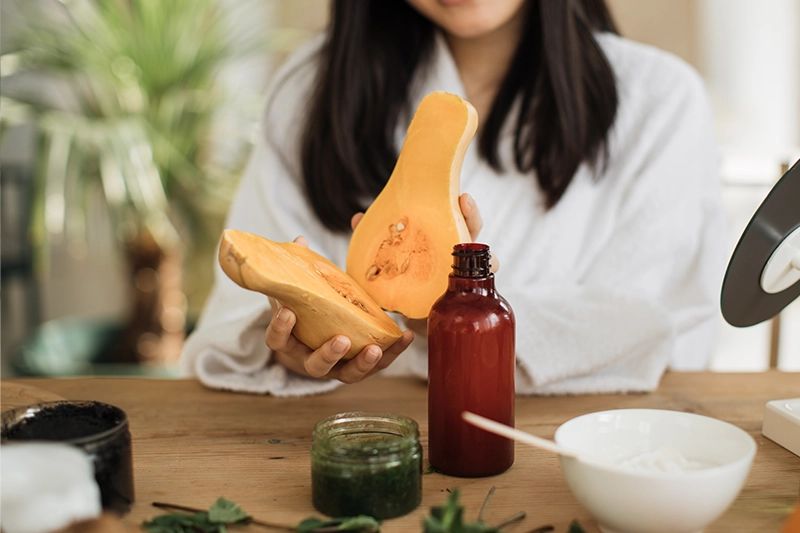 Idealny dla skóry mieszanej oraz problematycznej, z problemem krostek, grudek i nadmiernej produkcji sebum. Dzięki obecności naturalnego miąższu z dyni, bogatego w witaminy C, B1, B2, B6, PP i K, zabieg skutecznie reguluje pracę gruczołów łojowych, redukuje stany zapalne oraz wygładza powierzchnię skóry. Zawarty beta-karoten przenika w głąb skóry, gdzie przekształca się w aktywną formę witaminy A, działając przeciwzapalnie i przeciwstarzeniowo. Probiotyki zapobiegają namnażaniu się szkodliwych bakterii, przez co zmniejszają i niwelują ryzyko infekcji oraz problemów skórnych. Dzięki zastosowaniu substancji przeciwzapalnych, jak: niacynamid, komórki macierzyste z pomarańczy i lilaka pospolitego, skóra po zabiegu jest zmatowiona, rozjaśniona i odpowiednio nawilżona.